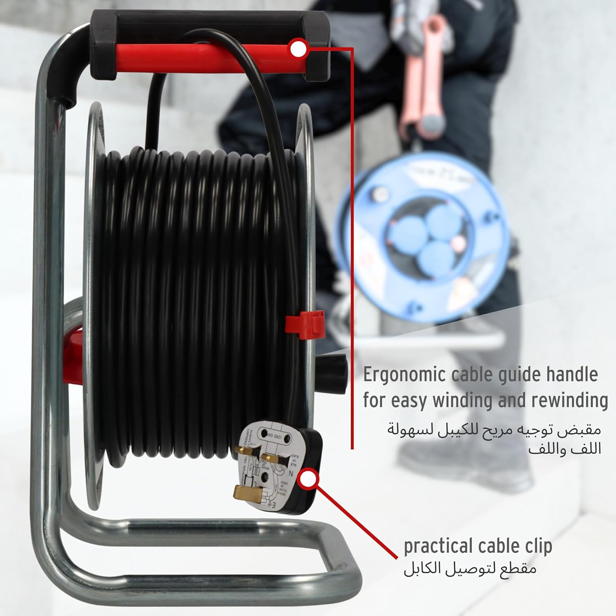 تصميمه يسهل لف وفرد السلك بدون مجهود مناسب للبيت والمزرعة والورش والمواقع